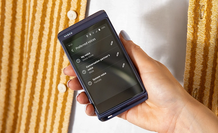 Voor wie graag een keuze heeft. Naast de revolutionaire Vasco My Voice-functie kun je ook kiezen voor een klassieke mannen- of vrouwenstem om de vertalingen voor te lezen. Zo kun je de toon aanpassen op elke situatie. Liever een formele toon voor zakelijke vergaderingen, of iets warmer voor familiegesprekken? Jouw vertaler, jouw regels.